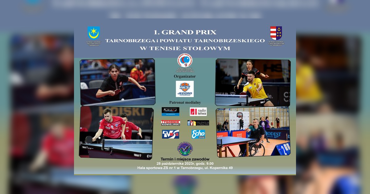 IKS Jezioro Tarnobrzeg serdecznie zaprasza kibiców na 1. Grand Prix Tarnobrzega i Powiatu Tarnobrzeskiego w Tenisie Stołowym.