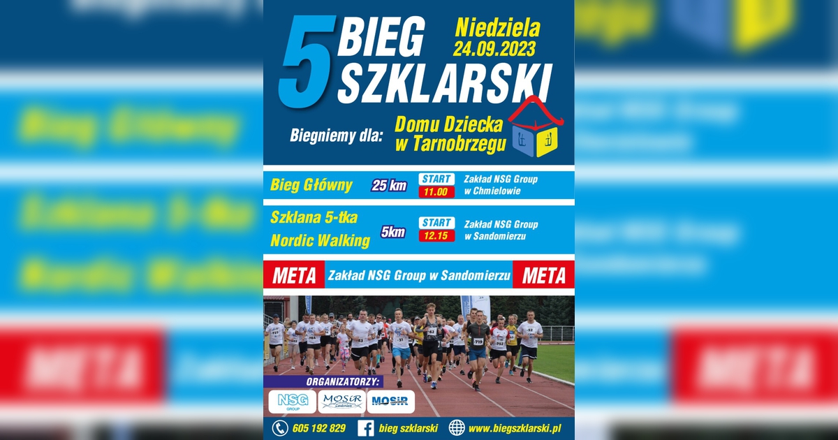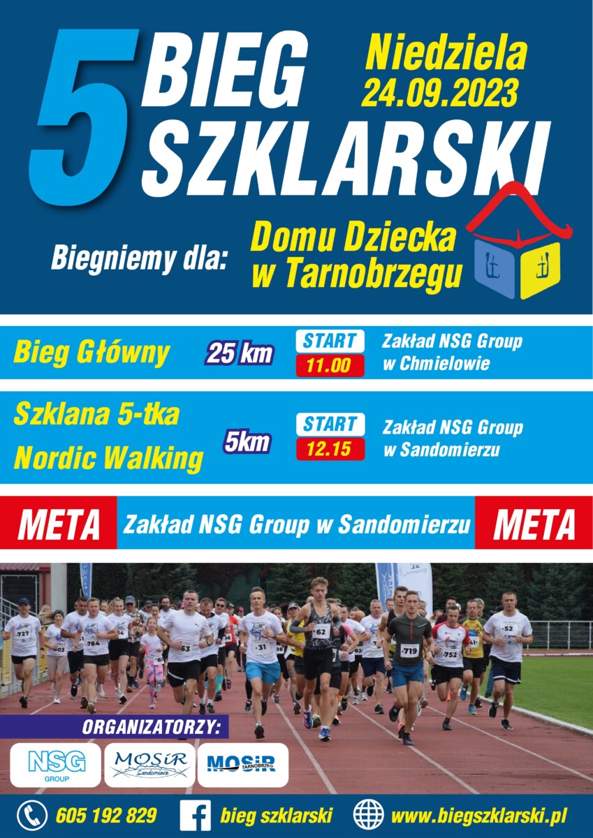 Tegoroczna, piąta już edycja Biegu Szklarskiego odbędzie się 24 września. Uczestnicy będą mogli zmierzyć się na trzech dystansach – Bieg Główny, Szklana Piątka oraz NordicWalking. Bieg Główny na dystansie 25 km rozpocznie się wfabryce Pilkington Automotive Poland w Chmielowie, z kolei Szklana Piątka i NordicWalkingw siedzibiePilkington Polska w Sandomierzu. Niezależnie od wybranej trasy, wszyscy uczestnicy spotkają się na mecie, która znajdować się będzie przy bramie głównej siedziby NSG Group w Sandomierzu.