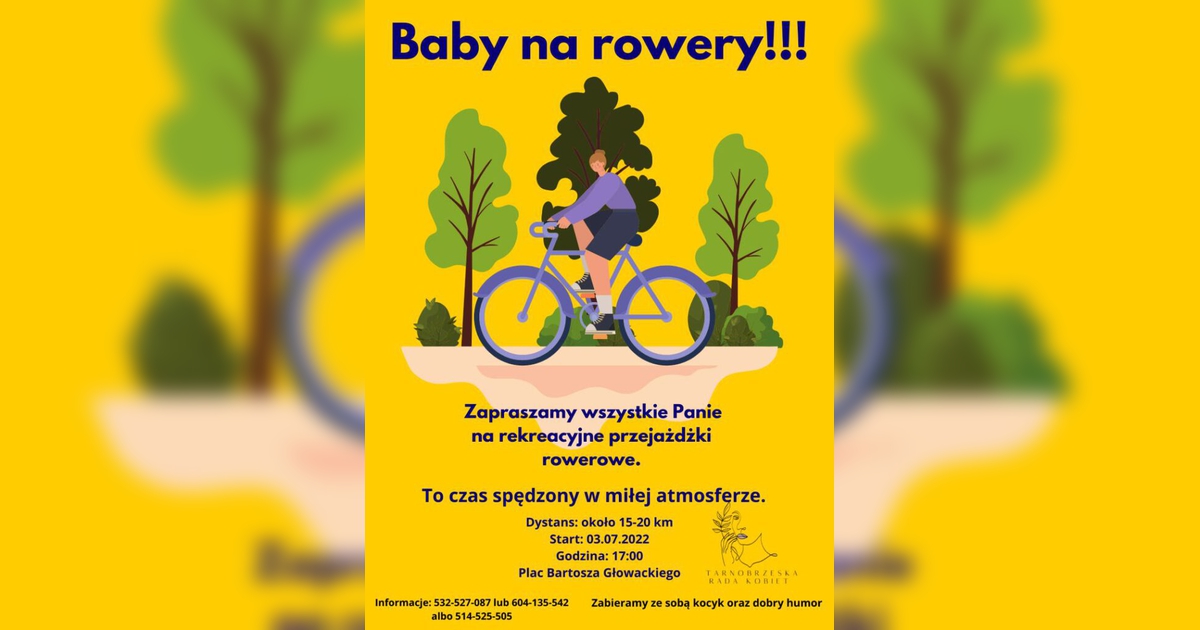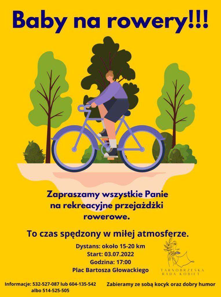 Tarnobrzeska Rada Kobiet zaprasza wszystkie Panie na rekreacyjne przejażdżki rowerowe. Szczegóły na plakacie.