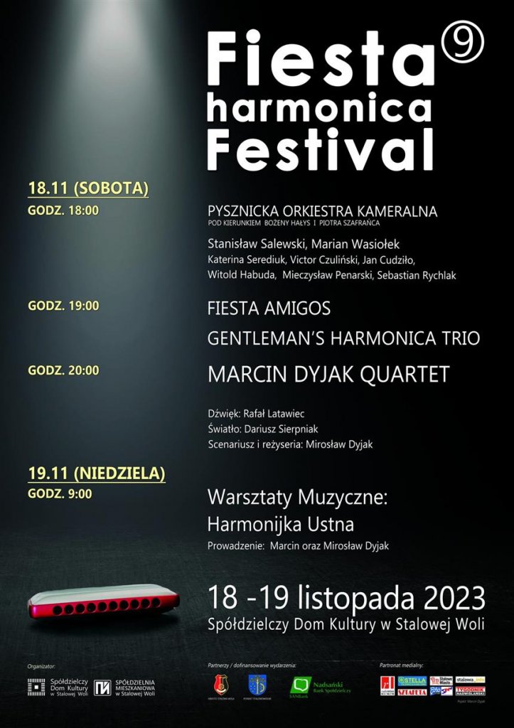 Fiesta Harmonica Festival to projekt artystyczny będący mariażem świata harmonijki ustnej z wieloma dziedzinami sztuki. W programie 9 edycji, która odbędzie się w dniach 18-19 listopada 2023 roku, zaprezentują się artyści wykonujący muzykę klasyczną, filmową, rozrywkową, folkową oraz etniczną.