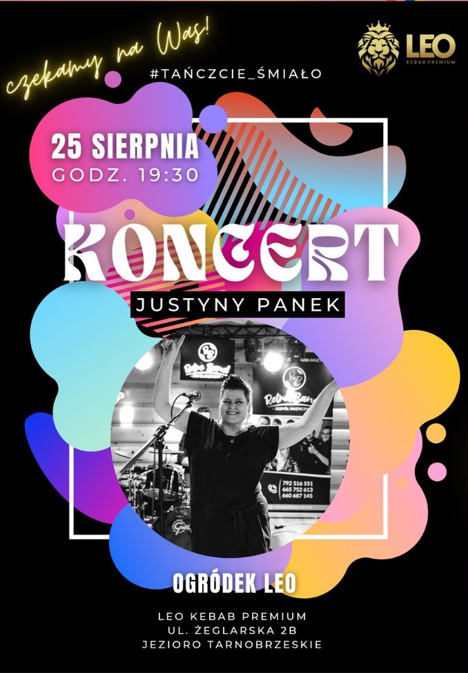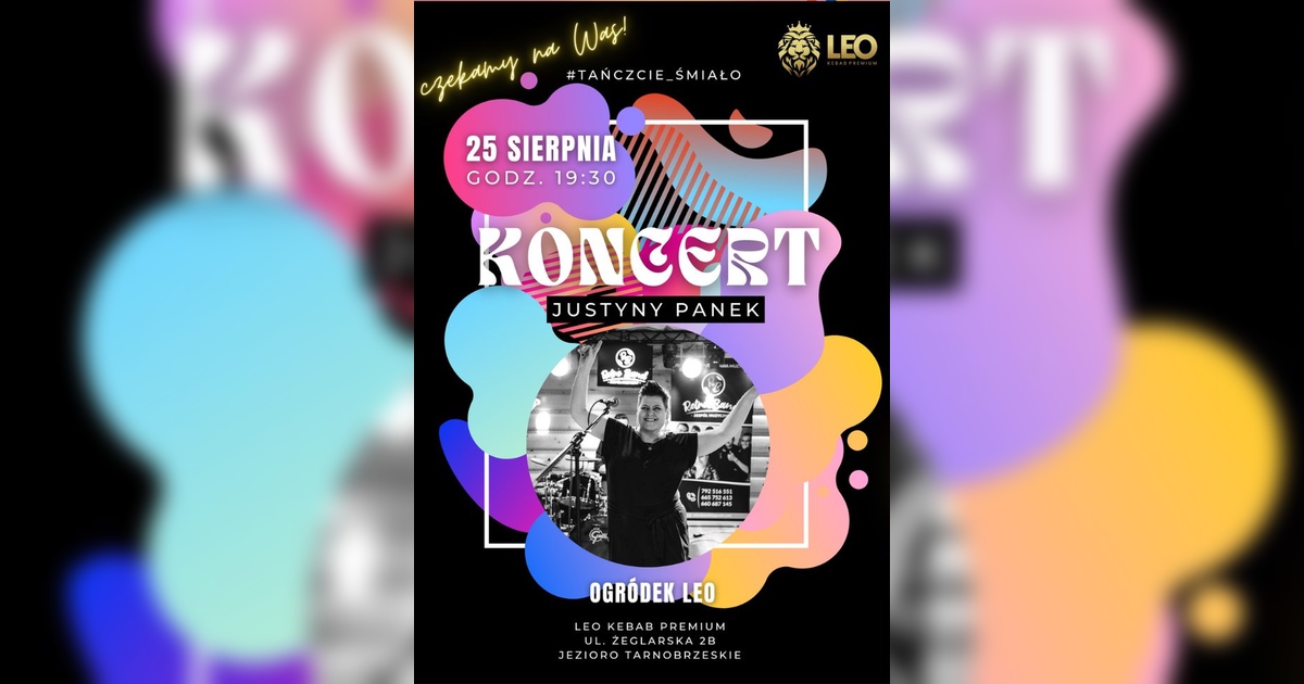 W piątek 25 sierpnia o godz. 19:30 w ogródku Leo Kebab odbędzie się drugi koncert Justyny Panek! Uczestniczki programu „The Voice of Poland”, „Szansa na Sukces” oraz „Tak to leciało!”.
