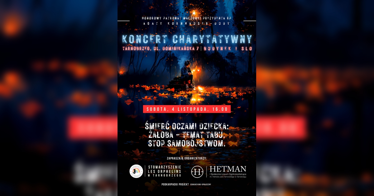 Koncert organizowany jest w ramach Podkarpackiego Projektu Edukacyjno-Społecznego "Śmierć oczami dziecka: żałoba- temat tabu. STOP SAMOBÓJSTWOM", pod Honorowym Patronatem Małżonki Prezydenta RP Agaty Kornhauser-Dudy.