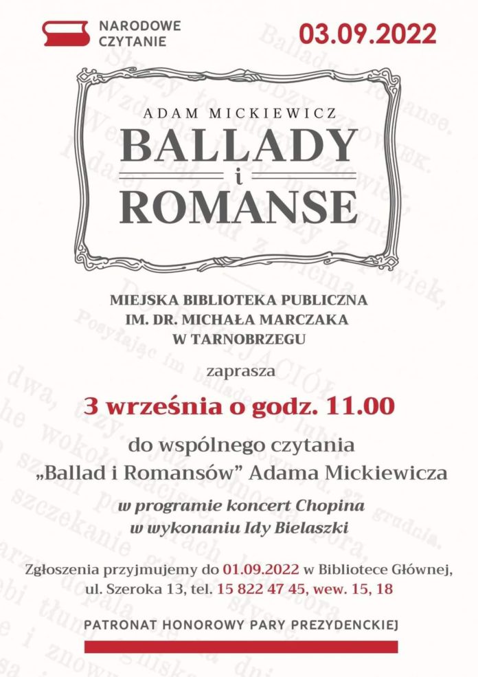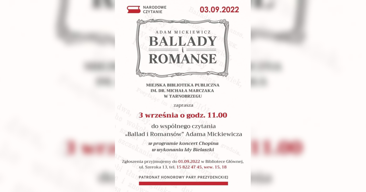 Zapraszamy na kolejną edycję wspólnego zgłębiania polskiej literatury. W tym roku skupimy się na twórczości Adama Mickiewicza. W programie planowany jest również występ Idy Bielaszki, która odegra koncert w oparciu o utwory Chopina.