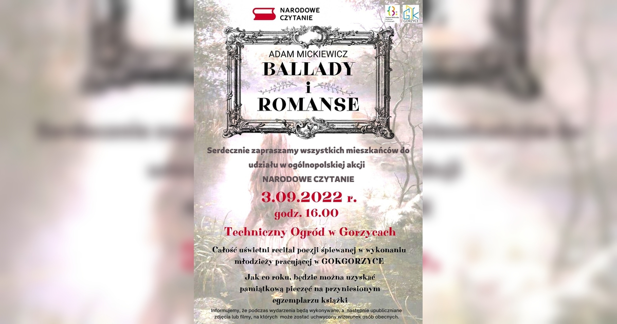 Kolejna edycja Narodowego Czytania, organizowanego każdego roku. Tej jesieni będziemy uraczeni balladami i romansami Adama Mickiewicza.
