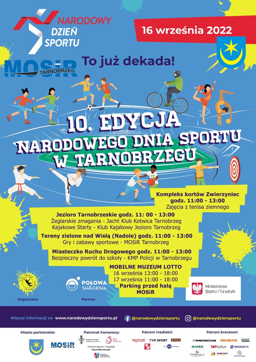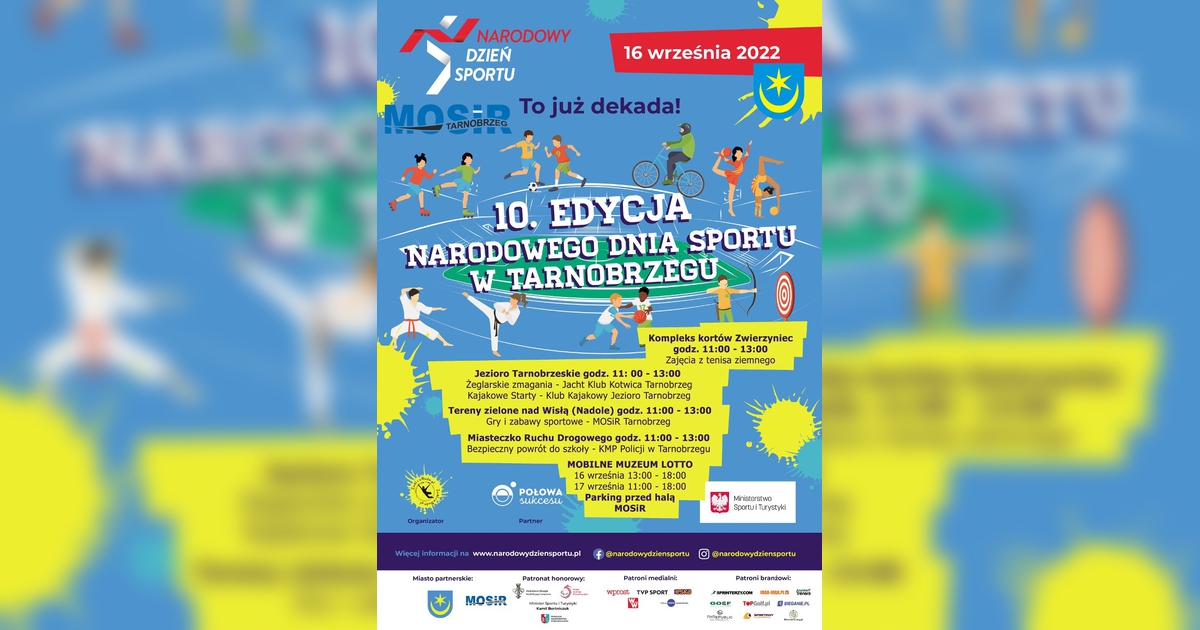 W tym roku obchodzimy X już edycję Narodowego Dnia Sportu. Tarnobrzeg jest miastem partnerskim wydarzenia i bierze czynny udział w organizowaniu z tej okazji atrakcji. Szczegółowy plan i rozpiskę poszczególnych rozgrywek podamy wkrótce.