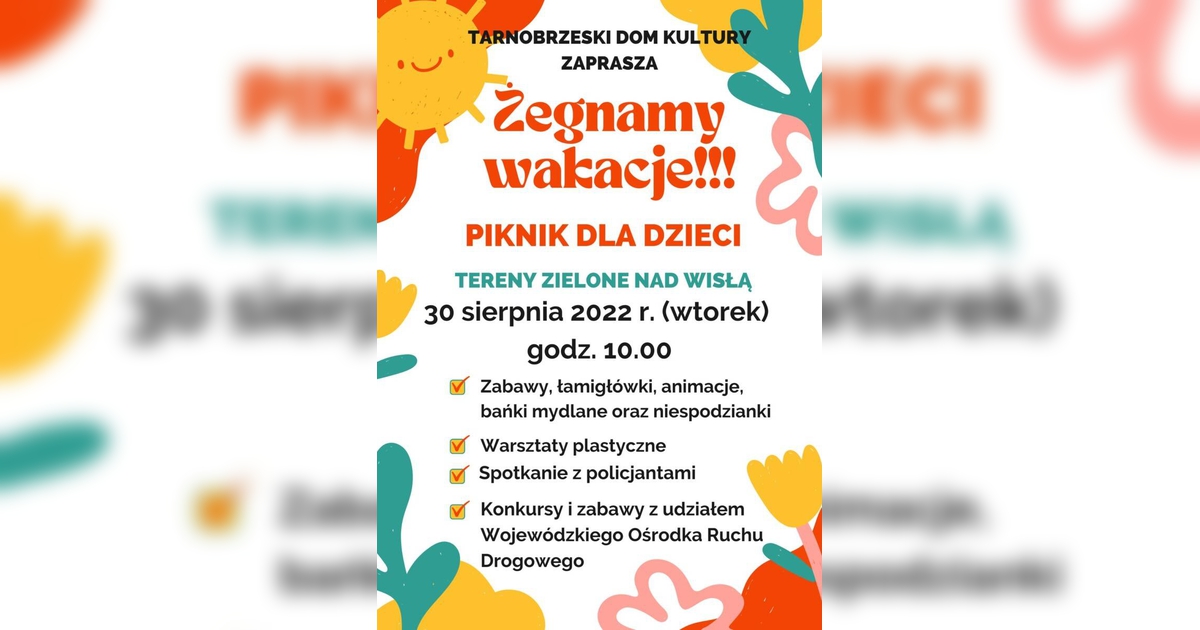 Zapraszamy dzieci na piknik – ŻEGNAMY WAKACJE!
