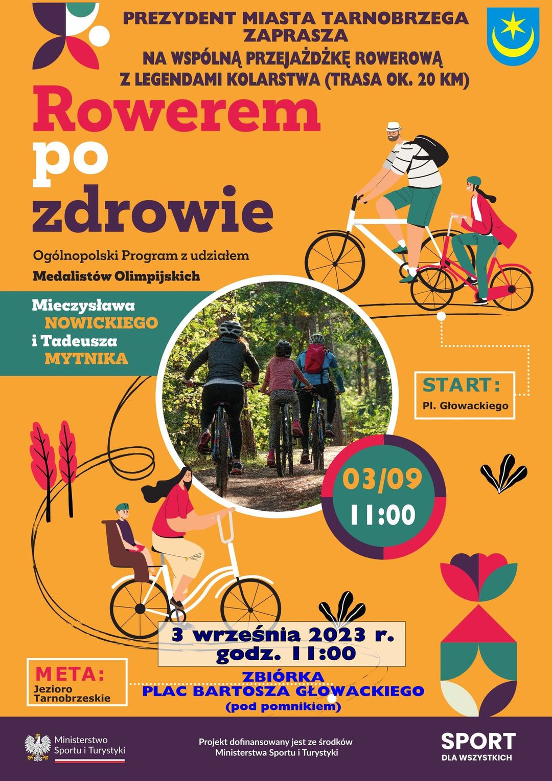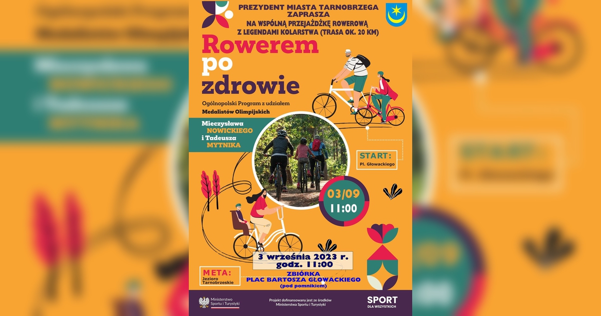 Fundacja "Zatrzymać Czas" wraz z wsparciem Ministerstwa Sportu i Turystyki organizuje wydarzenie o nazwie "Rowerem po zdrowie w Tarnobrzegu", które ma na celu zachęcenie mieszkańców do aktywności fizycznej oraz promocję rowerowego stylu życia dla ludzi w różnym wieku. Spotkanie odbędzie się w niedzielę, 3 września 2023 roku, o godzinie 11:00 na Placu Bartosza Głowackiego w Tarnobrzegu.