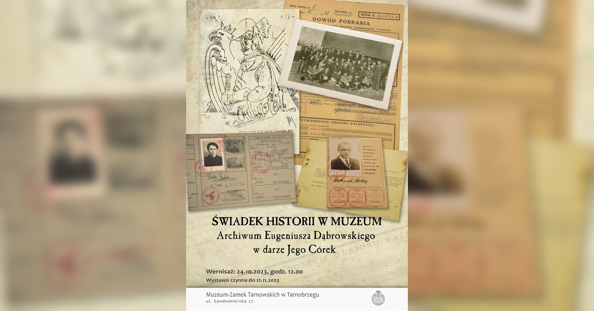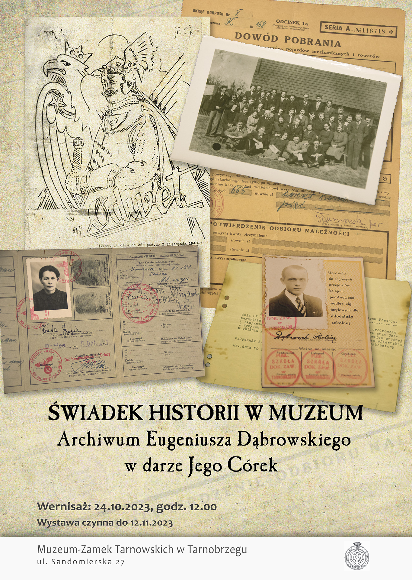 Muzeum-Zamek Tarnowskich zaprasza na wystawę pt. „Świadek Historii w Muzeum. Archiwum Eugeniusza Dąbrowskiego w darze Jego Córek”, prezentującą ostatnie nabytki Muzeum, to jest spuściznę po Eugeniuszu Dąbrowskim, żołnierzu i kronikarzu oddziału partyzanckiego „Jędrusie”, przekazanej przez jego córki. Na ekspozycji zostanie przedstawiona część zbioru, liczącego kilkaset cennych obiektów.