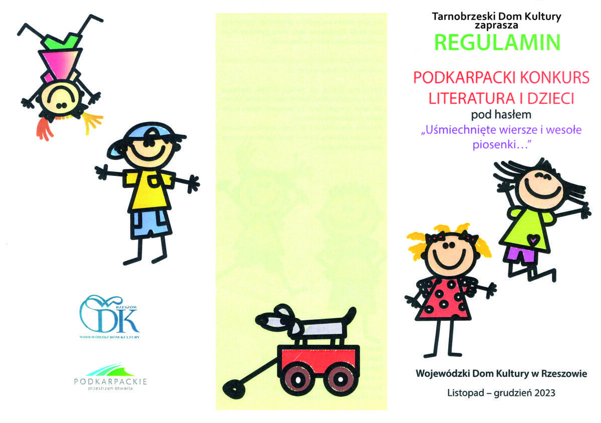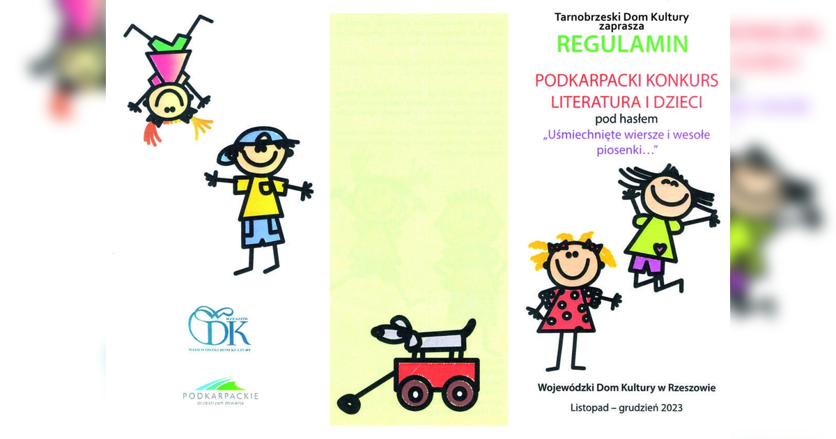 Tarnobrzeski Dom Kultury zaprasza dzieci ze szkół podstawowych (kl. I – VI) do udziału w PODKARPACKIM KONKURSIE LITERATURA I DZIECI pod hasłem „Uśmiechnięte wiersze i wesołe piosenki…”