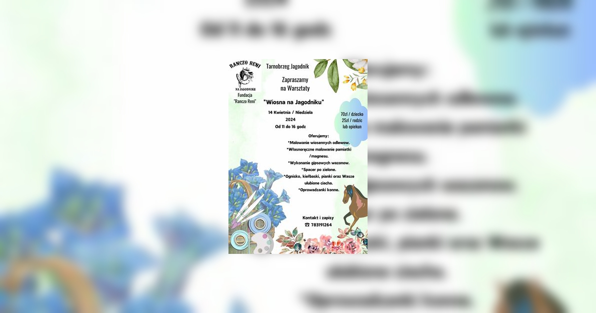 Fundacja 'Ranczo Reni' zaprasza do wzięcia udziału w warsztatach "Wiosna na Jagodniku".