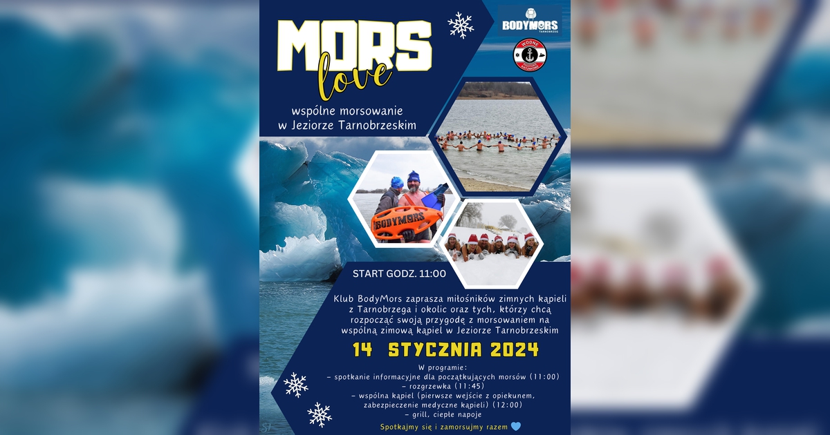 BodyMors zaprasza wszystkich sympatyków zimnych kąpieli z Tarnobrzega i okolic, jak również tych, którzy chcą rozpocząć swoją przygodę z morsowaniem 14 stycznia nad Jezioro Tarnobrzeskie. Zamorsujmy razem!
