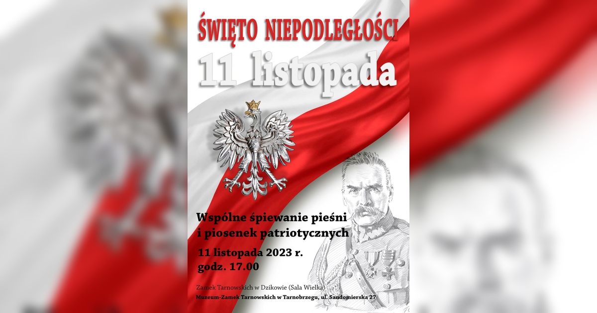 Muzeum – Zamek Tarnowskich w Tarnobrzegu w ramach uroczystych obchodów Święta Niepodległości zaprasza na wspólne śpiewanie pieśni i piosenek patriotycznych.